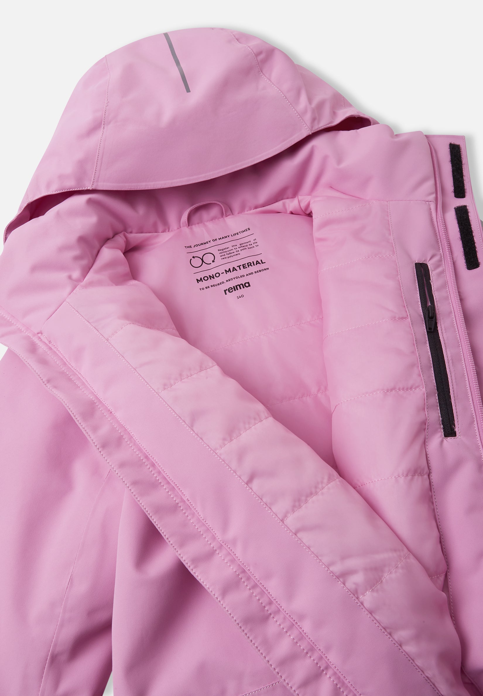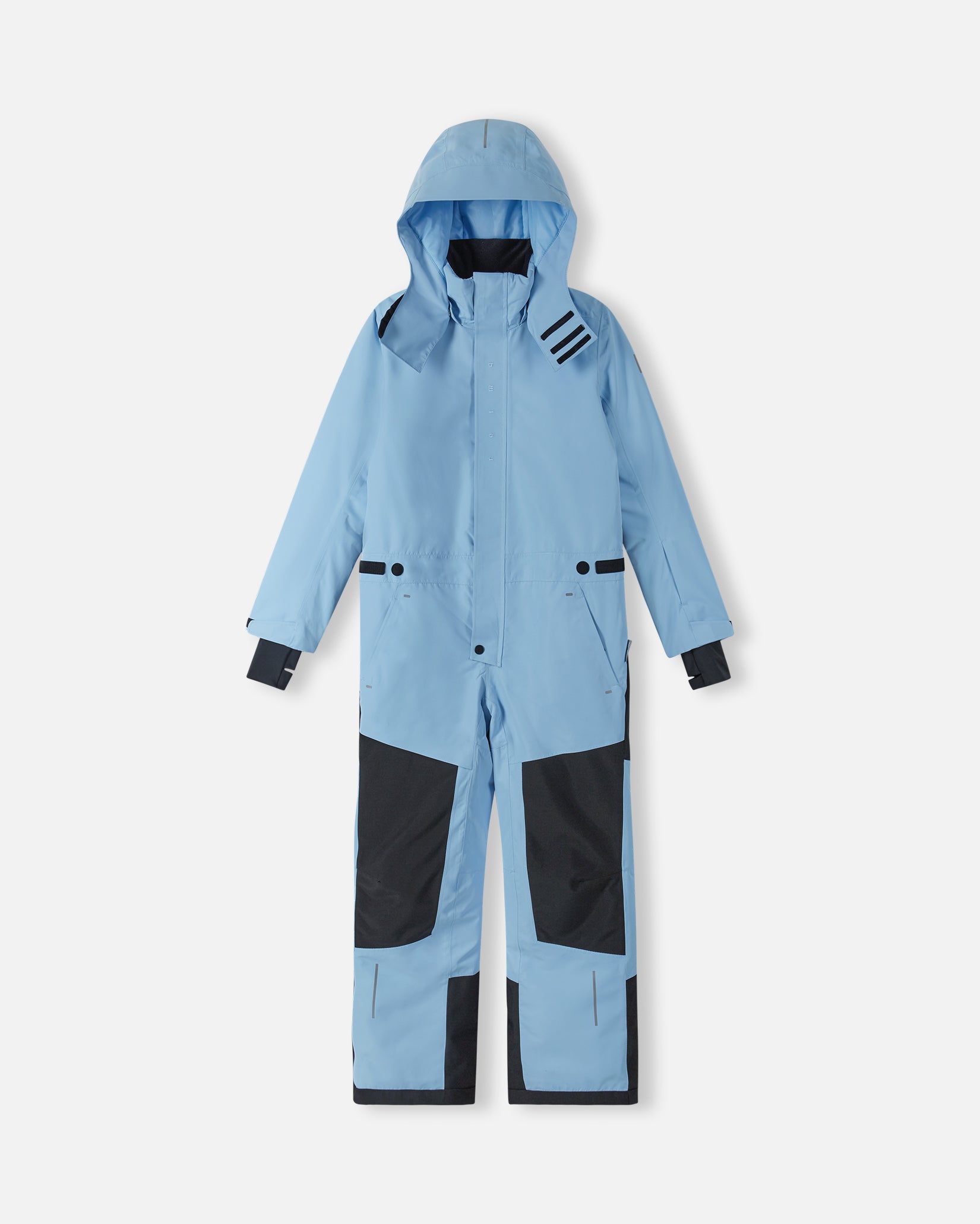 - Easily recyclable Reimatec juniors' snowsuit with carefully crafted snowsport details. Waterproof and breathable. Keep your young adventurer warm and dry in the kids waterproof snowsuit Palaten. Its waterproof construction, complete with taped seams, ensures a dry and comfortable experience even in the harshest weather. The durable material with light insulation provides perfect warmth without compromising on breathability. With ski-friendly features, very durable reinforcements, and a water and dirt repellent finish, this suit is perfect for active kids. The safe, detachable hood, adjustable cuffs, and waist allow for a custom fit. It also boasts zip pockets, a skipass pocket, and snowlocks at leg ends. Your child will also be more visible in the dark, thanks to the reflective details.